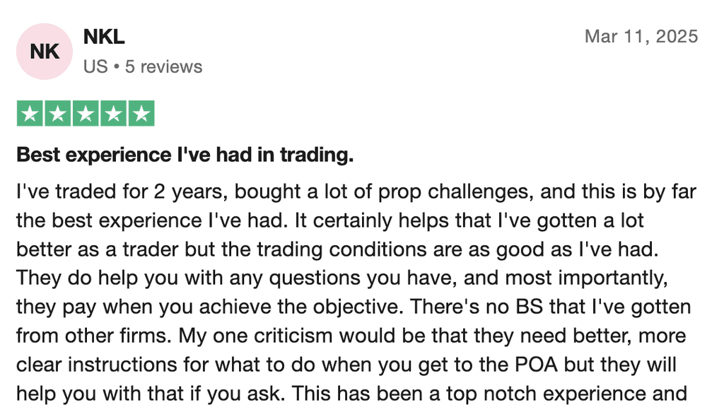 Instant Funded traders start out in a Simulated Funded Account, where they must trade for at least 10 days, reach a profit target, and have at least 5 profitable days ($200 minimum). After that, traders are moved to the Live Funded Account, where they can take payouts on Day 1. Read More